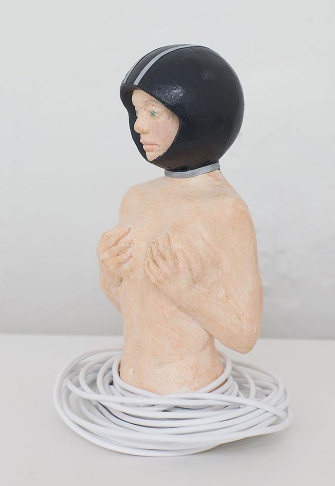 Image 3: Aufpassen, 2014, plaster casting, acrylic, clothesline, 20 x 14 x 13 cm